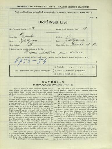 SI_ZAL_LJU/0504, t.e. 309, Popis prebivalstva 31. 3. 1931, Detelova ul. - Drenikova ul.