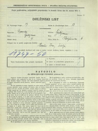 SI_ZAL_LJU/0504, t.e. 311, Popis prebivalstva 31. 3. 1931, Dvorni trg - Florjanska ul.