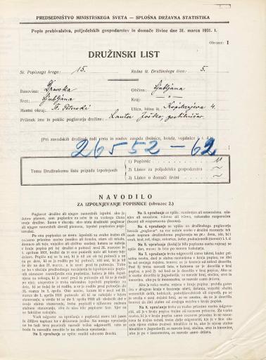 SI_ZAL_LJU/0504, t.e. 322, Popis prebivalstva 31. 3. 1931, Kolezijska ul. - Kopitarejva ul.