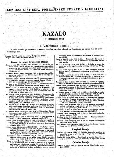 • Službeni list šefa pokrajinske uprave v Ljubljani: od 25. september 1943 do 29. december 1943