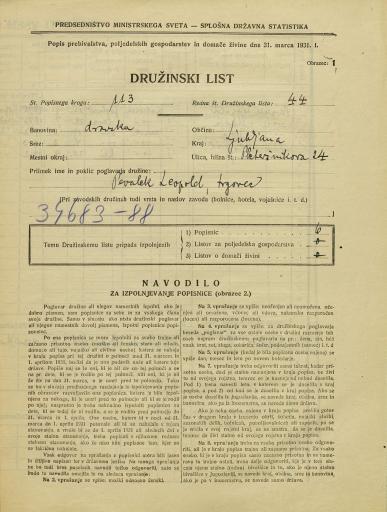 SI_ZAL_LJU/0504, t.e. 328, Popis prebivalstva 31. 3. 1931, Močnikova ul. - Pleteršnikova ul.