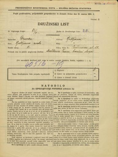 SI_ZAL_LJU/0504, t.e. 333, Popis prebivalstva 31. 3. 1931, Prekomorska c. - Rečna ul.