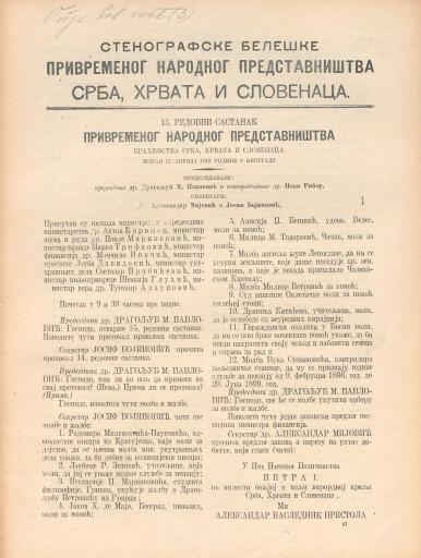 SI AS 2058/1, Stenografske beležke Začasnega narodnega predstavništva Kraljevine Srbov, Hrvatov in Slovencev, 1919