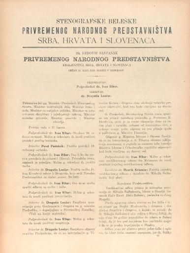 SI AS 2058/1, Stenografske beležke Začasnega narodnega predstavništva Kraljevine Srbov, Hrvatov in Slovencev, 1919