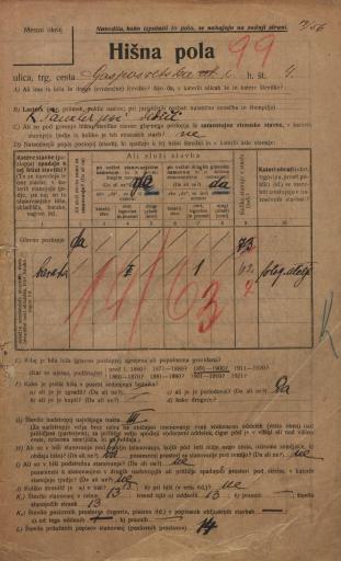 SI_ZAL_LJU/0504, t.e. 227, Popis prebivalstva 20. 12. 1921, Gledališka stolba - Gosposvetska c.