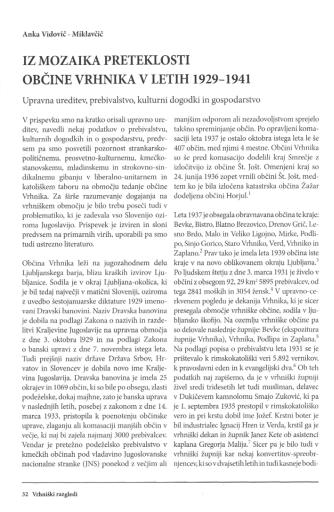 V prispevku smo na kratko orisali upravno ureditev, navedli nekaj podatkov o prebivalstvu, kulturnih dogodkih in o gospodarstvu, predvsem pa smo posvetili pozornost strankarskopolitičnemu, prosvetno-kulturnemu, kmečkostanovskemu, mladinskemu in strokovno-sindikalnemu gibanju v liberalno-unitarnem in katoliškem taboru na območju tedanje občine Vrhnika. Za širše razumevanje dogajanja na vrhniškem območju je bilo treba poseči tudi v problematiko, ki je zadevala vso Slovenijo oziroma Jugoslavijo. Prispevek je izviren in sloni predvsem na primarnih virih, uporabili pa smo tudi ustrezno literaturo.