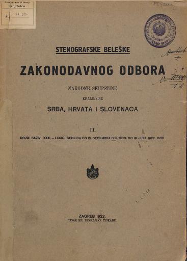 SI AS 2058/3, Stenografske beležke Zakonodajnega odbora narodne skupščine Kraljevine Srbov, Hrvatov in Slovencev, 1921-1922