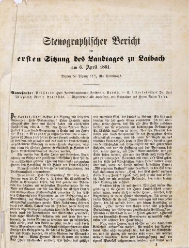 • Original title: Stenographischer Bericht der ersten Sitzung des Landtages zu Laibach am 6. April 1861