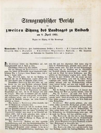 • Stenographischer Bericht der zweiten Sitzung des Landtages zu Laibach am 8. April 1861