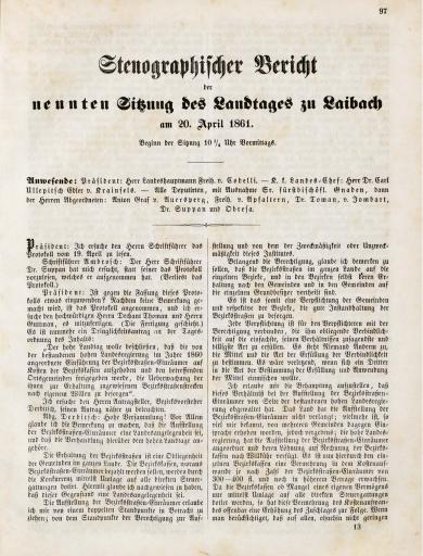 • Originalni naslov: Stenographischer Bericht der neunten Sitzung des Landtages zu Laibach am 20. April 1861
