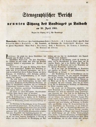 • Original title: Stenographischer Bericht der neunten Sitzung des Landtages zu Laibach am 20. April 1861