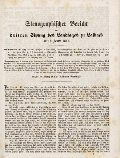 Originalni naslov: Stenographischer Bericht der dritten Sitzung des Landtages zu Laibach am 12. Jänner 1863