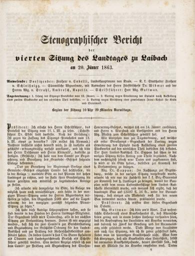• Originalni naslov: Stenographischer Bericht der vierten Sitzung des Landtages zu Laibach am 20. Jänner 1863