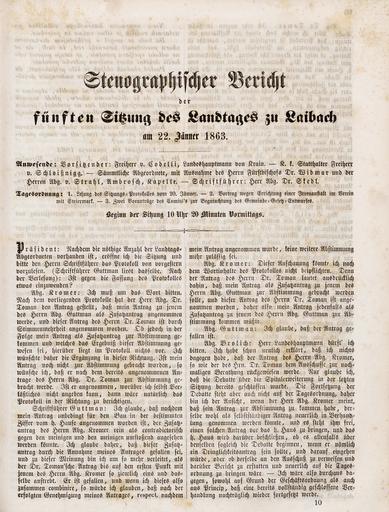 • Original title: Stenographischer Bericht der fünften Sitzung des Landtages zu Laibach am 22. Jänner 1863