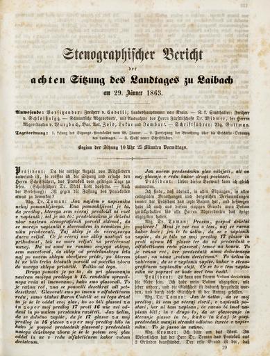 Originalni naslov: Stenographischer Bericht der achten Sitzung des Landtages zu Laibach am 29. Jänner 1863