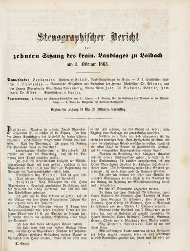 • Stenographischer Bericht der zehnten Sitzung des Landtages zu Laibach am 10. Februar 1863