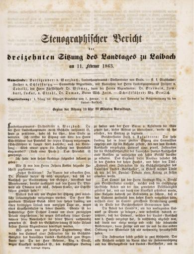 • Original title: Stenographischer Bericht der dreizehnten Sitzung des Landtages zu Laibach am 11. Februar 1863