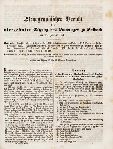 • Original title: Stenographischer Bericht der vierzehnten Sitzung des Landtages zu Laibach am 13. Februar 1863