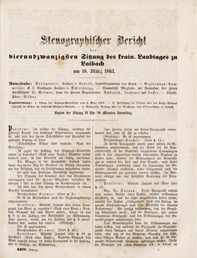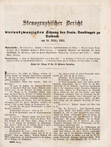 • Original title: Stenographischer Bericht der vierundzwanzigsten Sitzung des Landtages zu Laibach am 10. März 1863