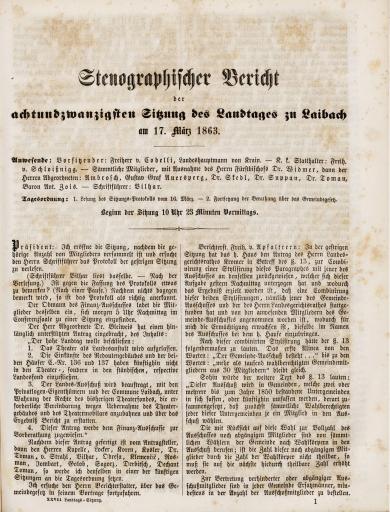 • Original title: Stenographischer Bericht der achtundzwanzigsten Sitzung des Landtages zu Laibach am 17. März 1863