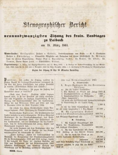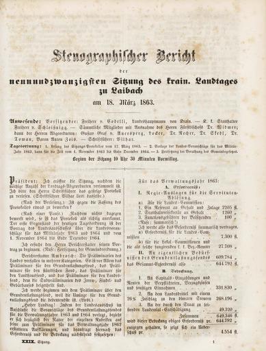 • Original title: Stenographischer Bericht der neunundzwanzigsten Sitzung des Landtages zu Laibach am 18. März 1863