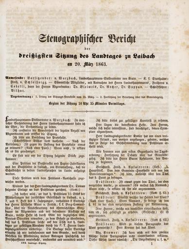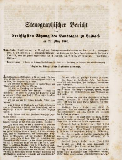 Originalni naslov: Stenographischer Bericht der dreissigsten Sitzung des Landtages zu Laibach am 20. März 1863