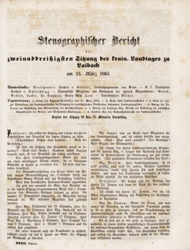 • Original title: Stenographischer Bericht der zweiunddreissigsten Sitzung des Landtages zu Laibach am 23. März 1863