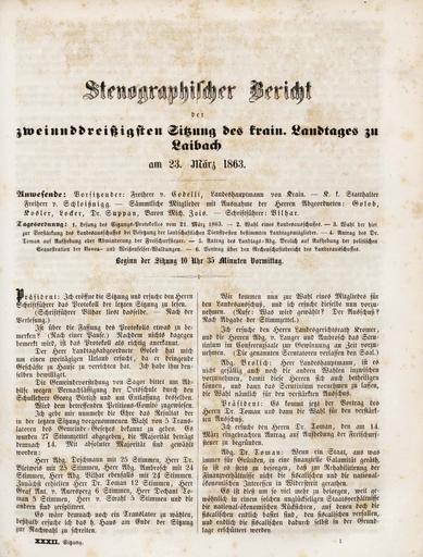 Originalni naslov: Stenographischer Bericht der zweiunddreissigsten Sitzung des Landtages zu Laibach am 23. März 1863