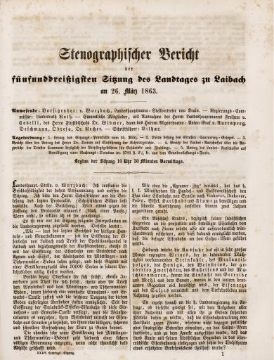 • Original title: Stenographischer Bericht der fünfunddreissigsten Sitzung des Landtages zu Laibach am 26. März 1863