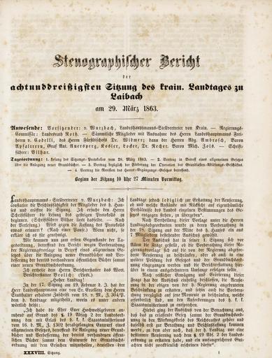 • Original title: Stenographischer Bericht der achtunddreissigsten Sitzung des Landtages zu Laibach am 29. März 1863