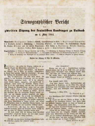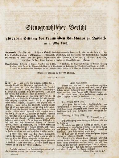 • Originalni naslov: Stenographischer Bericht der zweiten Sitzung des Landtages zu Laibach am 4. März 1864
