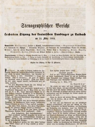 Originalni naslov: Stenographischer Bericht der sechsten Sitzung des Landtages zu Laibach am 14. März 1864