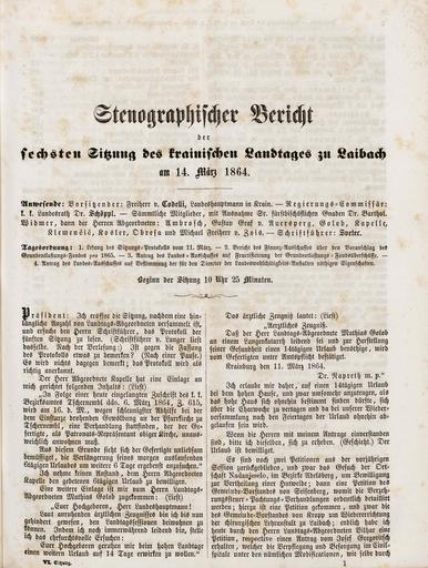 • Originalni naslov: Stenographischer Bericht der sechsten Sitzung des Landtages zu Laibach am 14. März 1864