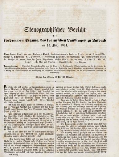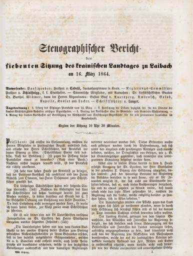 • Originalni naslov: Stenographischer Bericht der siebten Sitzung des Landtages zu Laibach am 16. März 1864