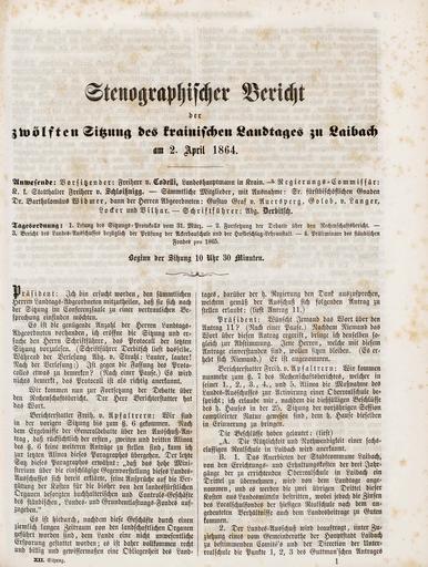 • Original title: Stenographischer Bericht der zwölften Sitzung des Landtages zu Laibach am 2. April 1864