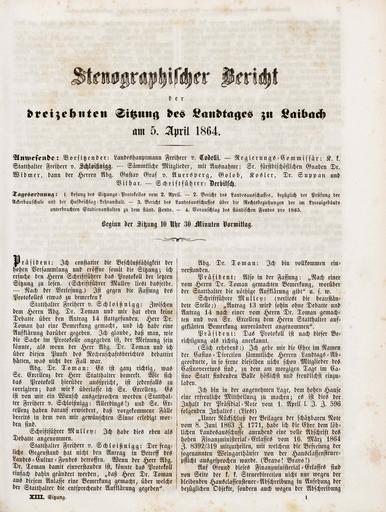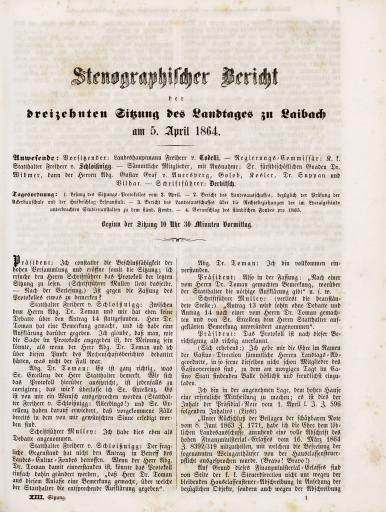 • Original title: Stenographischer Bericht der dreizehnten Sitzung des Landtages zu Laibach am 5. April 1864
