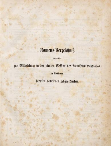 Original title: Namensverzeichniss sämmtlicher zur Mitwirkung in der vierten Session des krainischen Landtages in Laibach berufen gewesenen Abgeordneten