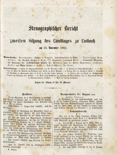 Originalni naslov: Stenographischer Bericht der zweiten Sitzung des Landtages zu Laibach am 25. November 1865