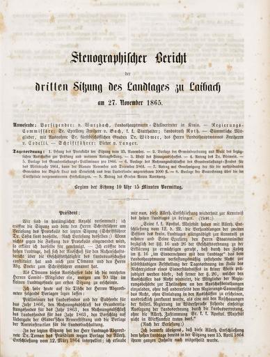Originalni naslov: Stenographischer Bericht der dritten Sitzung des Landtages zu Laibach am 27. November 1865
