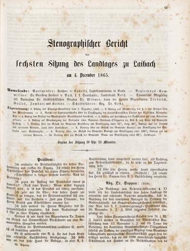 • Original title: Stenographischer Bericht der sechsten Sitzung des Landtages zu Laibach am 4. Dezember 1865