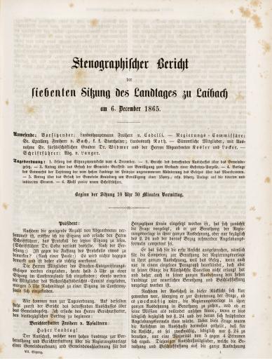 • Stenographischer Bericht der siebten Sitzung des Landtages zu Laibach am 7. Dezember 1865