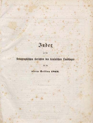 • Original title: Index zu den stenographischen Berichten des krainischen Landtages für die vierte Session 1866