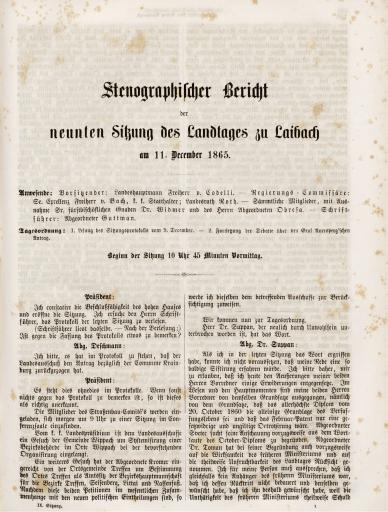 • Stenographischer Bericht der neunten Sitzung des Landtages zu Laibach am 11. Dezember 1865