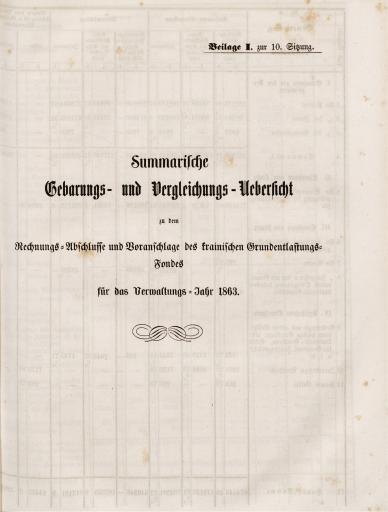 Originalni naslov: Summarische Gebarungs- und Vergleichungsübersicht zu dem Rechnungsabschlüsse und Voranschläge des krainischen Grundentlastungsfondes für das Verwaltungsjahr 1863
