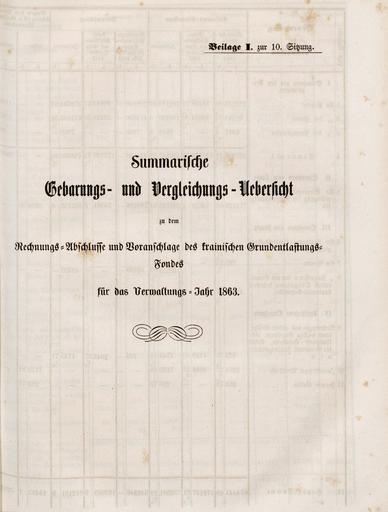 Original title: Summarische Gebarungs- und Vergleichungsübersicht zu dem Rechnungsabschlüsse und Voranschläge des krainischen Grundentlastungsfondes für das Verwaltungsjahr 1863