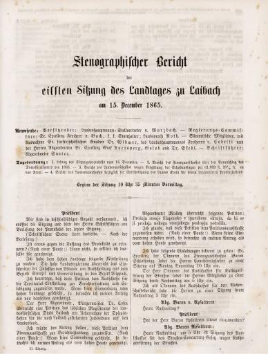 • Stenographischer Bericht der elften Sitzung des Landtages zu Laibach am 15. Dezember 1865
