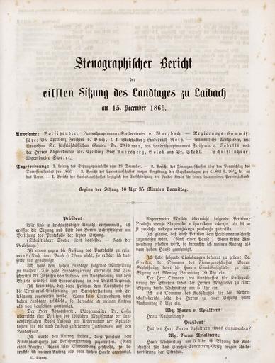 • Originalni naslov: Stenographischer Bericht der elften Sitzung des Landtages zu Laibach am 15. Dezember 1865