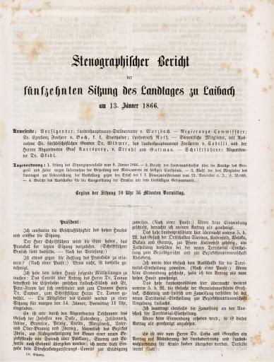 • Original title: Stenographischer Bericht der fünfzehnten Sitzung des Landtages zu Laibach am 13. Jänner 1866