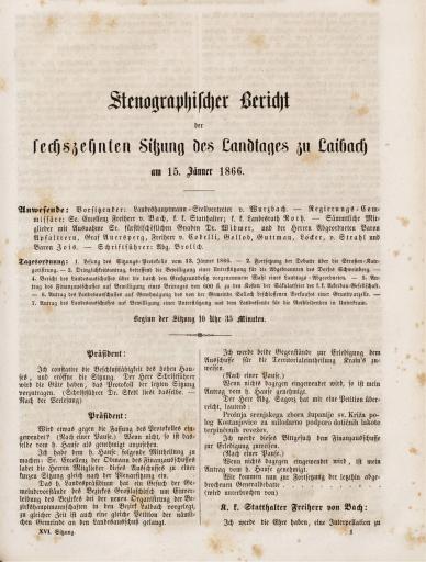• Originalni naslov: Stenographischer Bericht der sechszehnten Sitzung des Landtages zu Laibach am 15. Jänner 1866