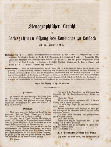 • Original title: Stenographischer Bericht der sechszehnten Sitzung des Landtages zu Laibach am 15. Jänner 1866